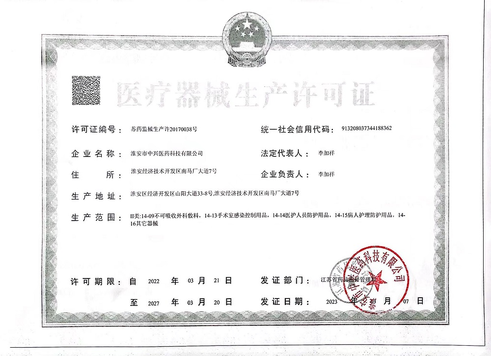 醫(yī)療器械注冊證(醫(yī)用紗布敷料注冊證)
