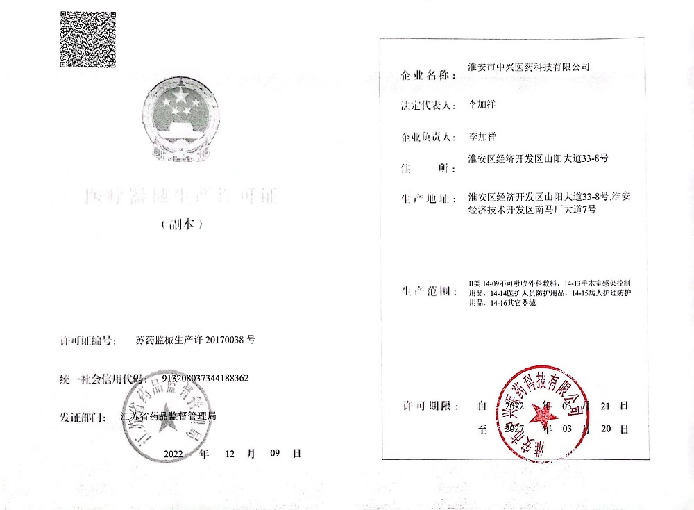 醫(yī)療器械注冊證(醫(yī)用外科口罩)