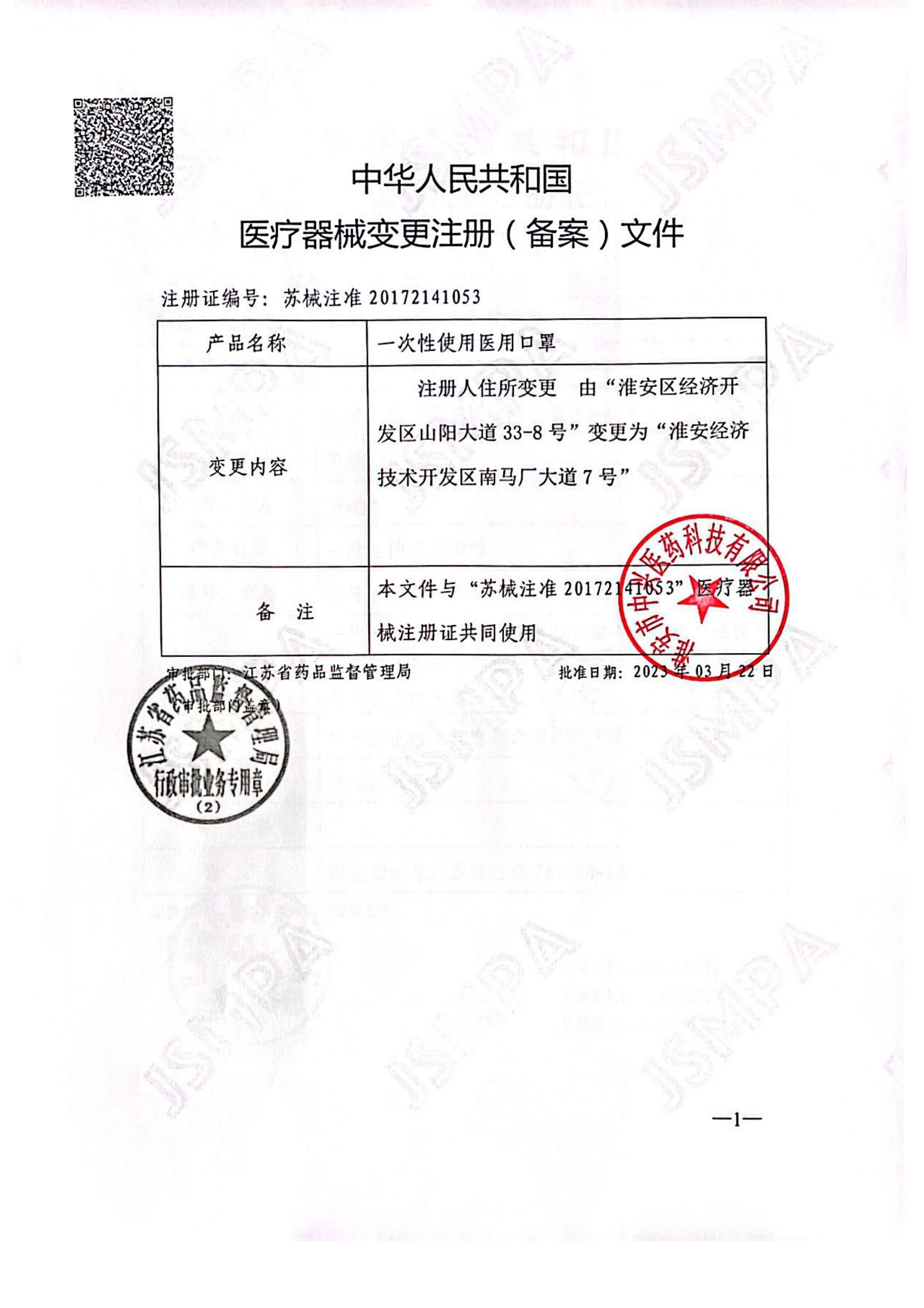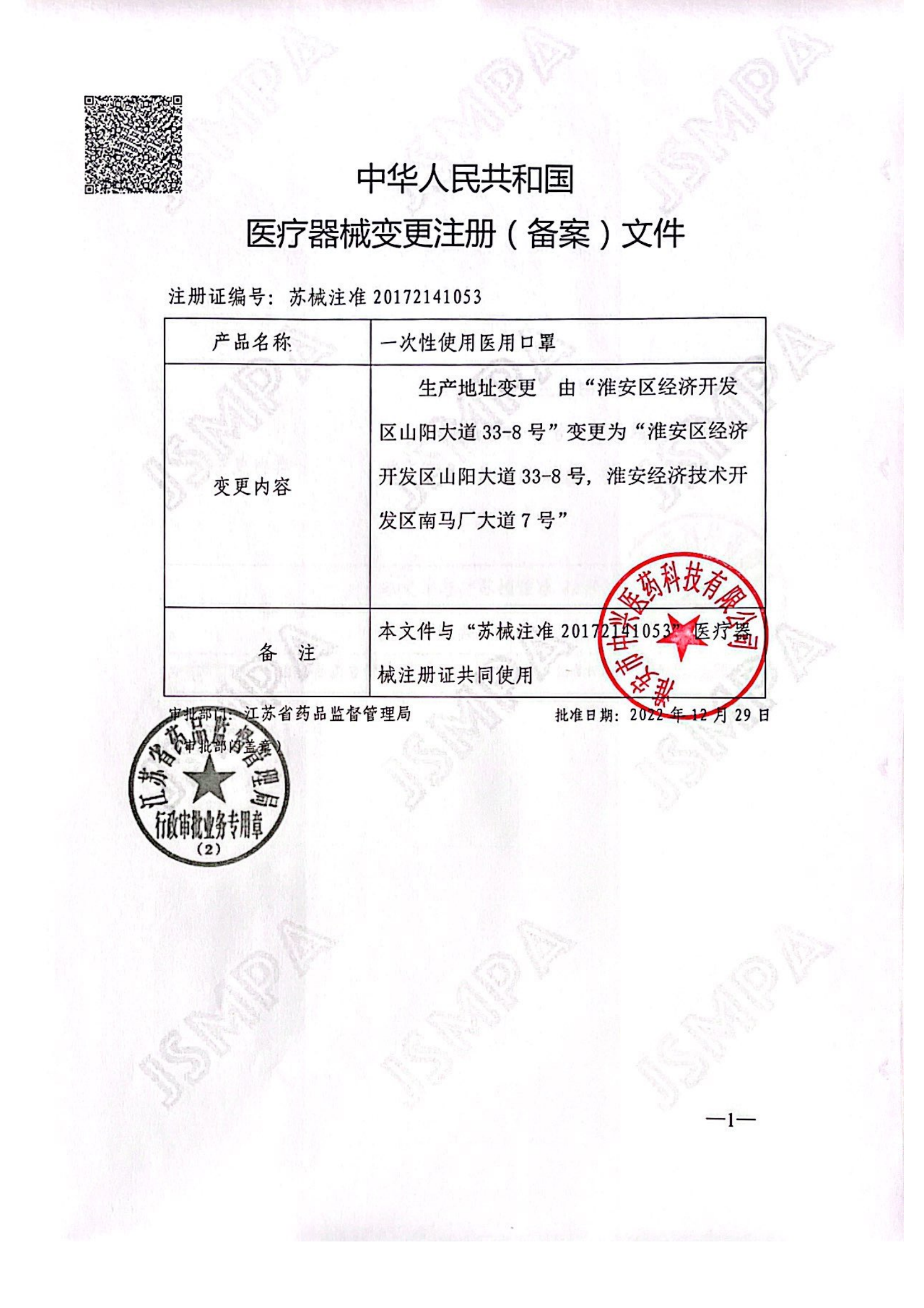 醫(yī)療器械注冊證(一次性使用醫(yī)用口罩 )