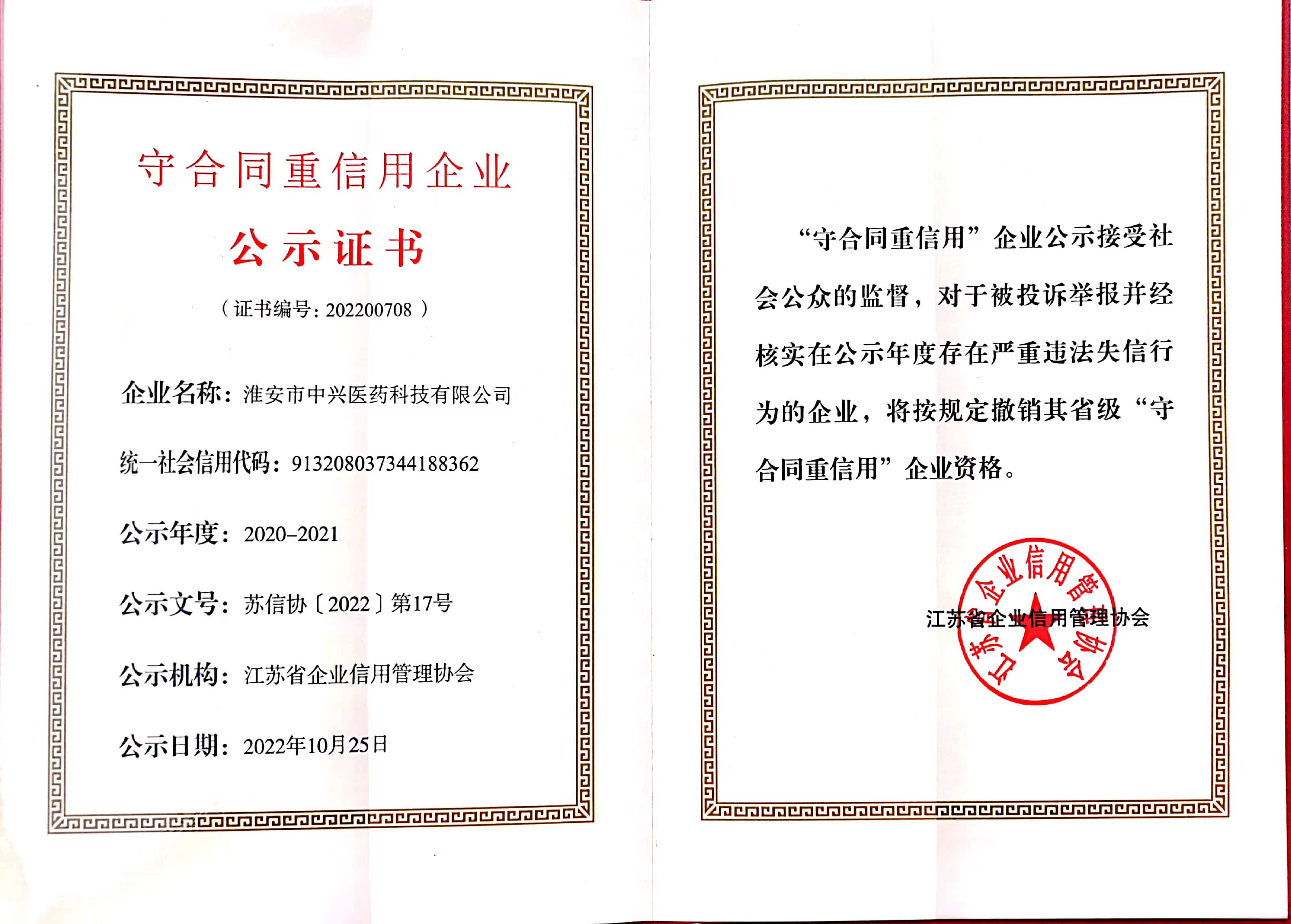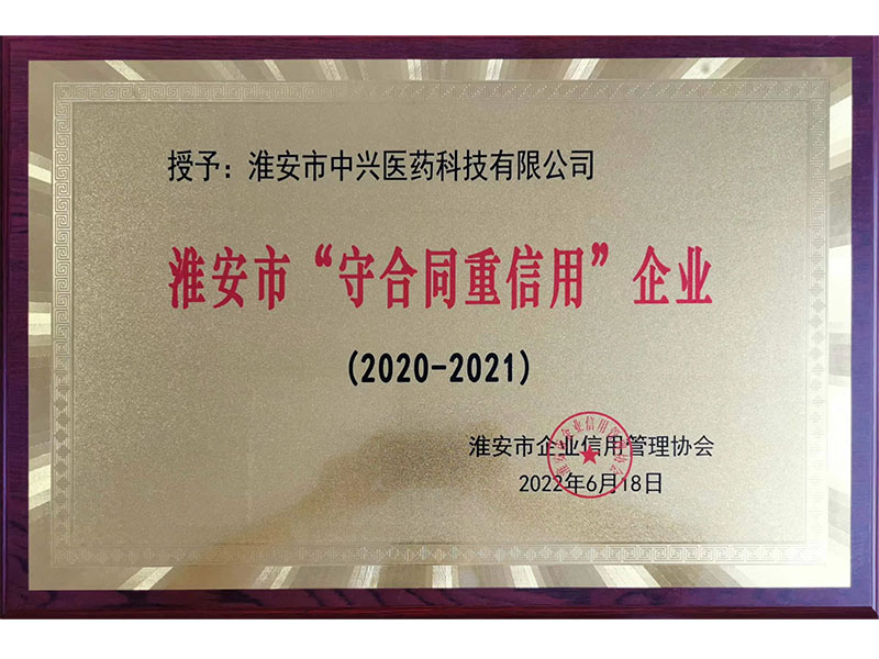 公司先后獲得淮安市價格誠信單位、AA級重合同守信用企業(yè)、年度先進(jìn)單位、江蘇省、市級價格誠信單位、江蘇省醫(yī)療器械行業(yè)協(xié)會副會長單位等省市級榮譽(yù)。獲2020年“鑫智力杯”創(chuàng)新型企業(yè)評選活動“淮安市科技之星企業(yè)”稱號、2020年度被授予首屆“淮安區(qū)誠信示范企業(yè)”稱號。